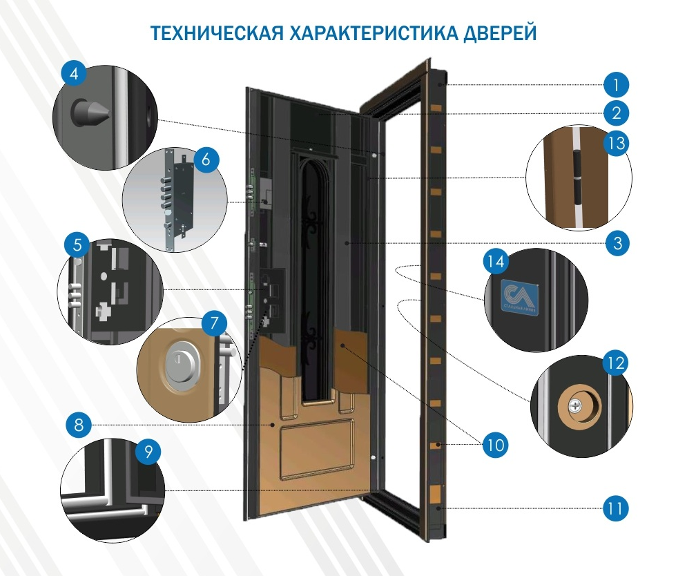 8. Декоративные панели толщиной 16 мм дополнительно увеличивают взломостоикость двери.