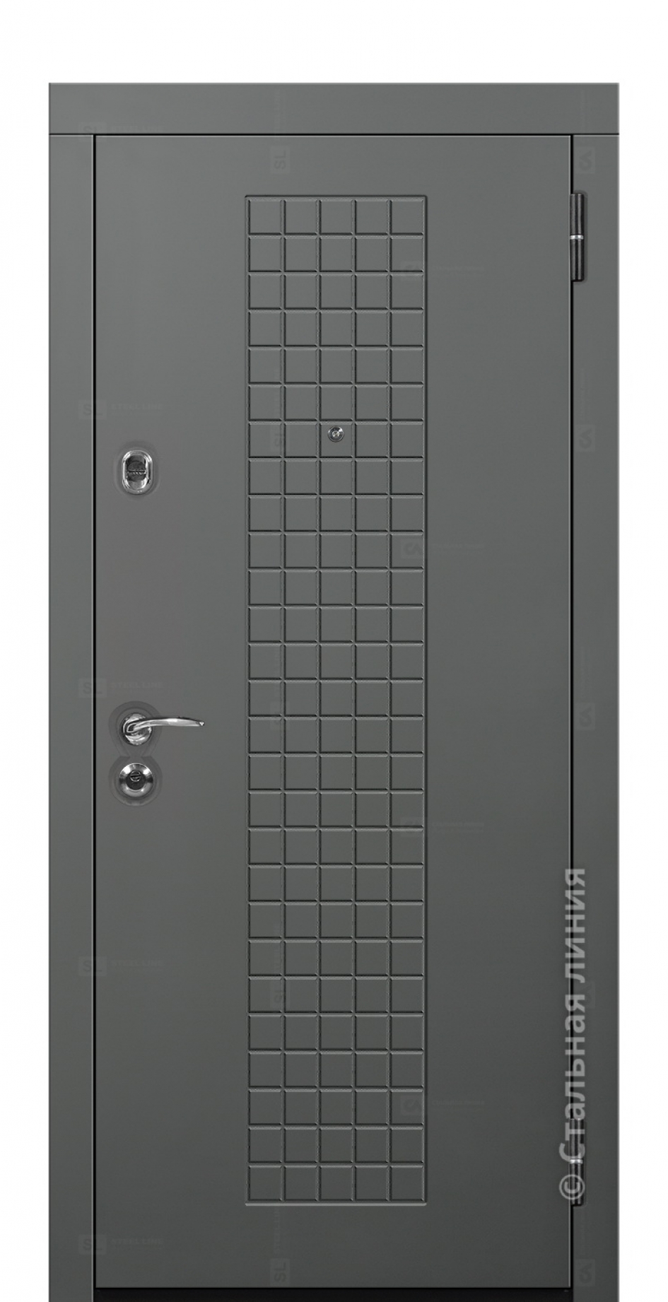 Модель «Омега» — индивидуальный стиль элегантной входной двери Омега дополняет правильная пропорция геометрических фигур, подчеркнутых красивым цветом и фактурой стойкого фирменного покрытия.