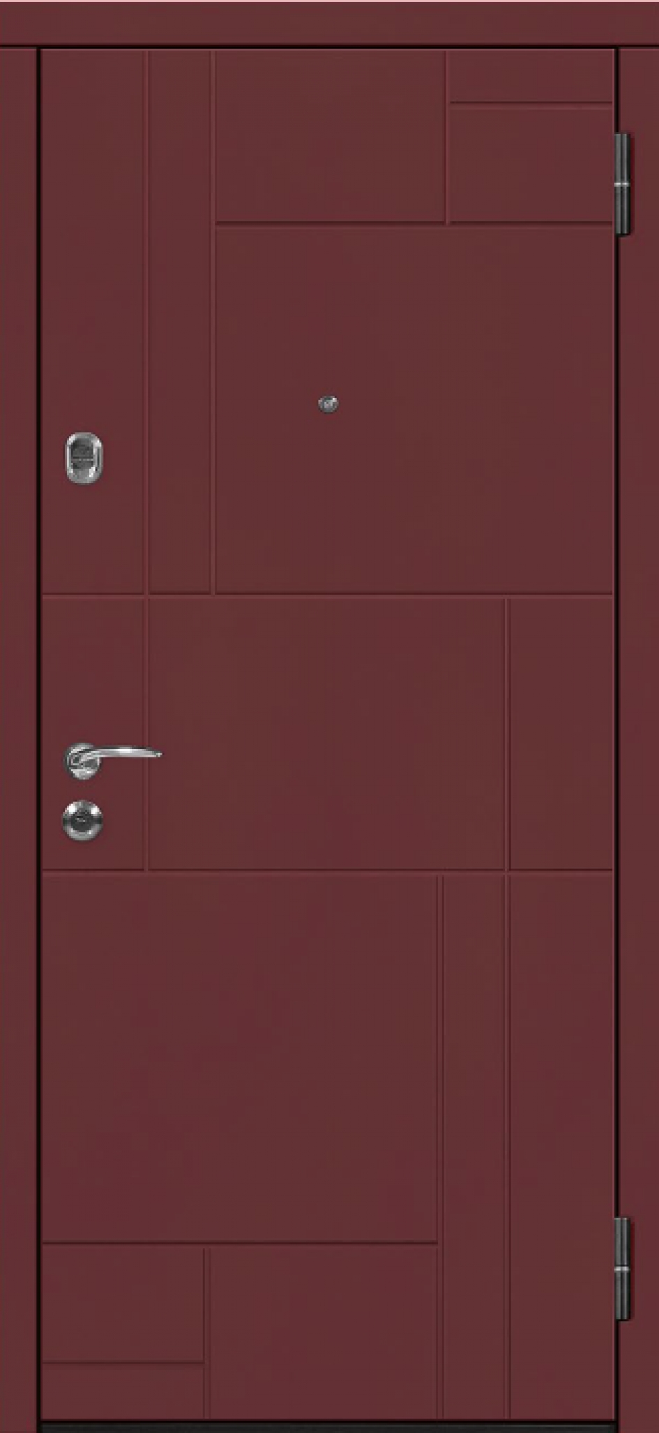 Модель «Аллегро» — стильная входная дверь имеет привлекательный внешний вид, обладает максимальной безопасностью, высокими эксплуатационными характеристиками и комфортом. Геометрический рисунок фрезеровки в виде больших квадратов придает полотну модный современный дизайн.