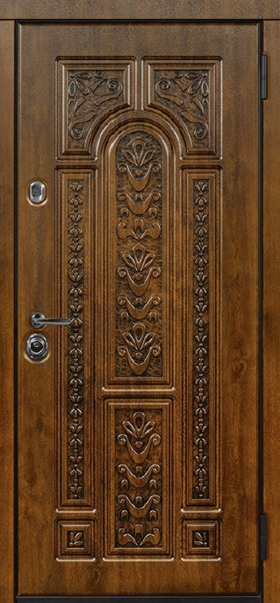 Модель «Рафаэль» — роскошная входная дверь выполнена в элегантном классическом стиле. Изящная фрезеровка привлекает внимание четкой прорисовкой в сочетании с великолепной патиной.