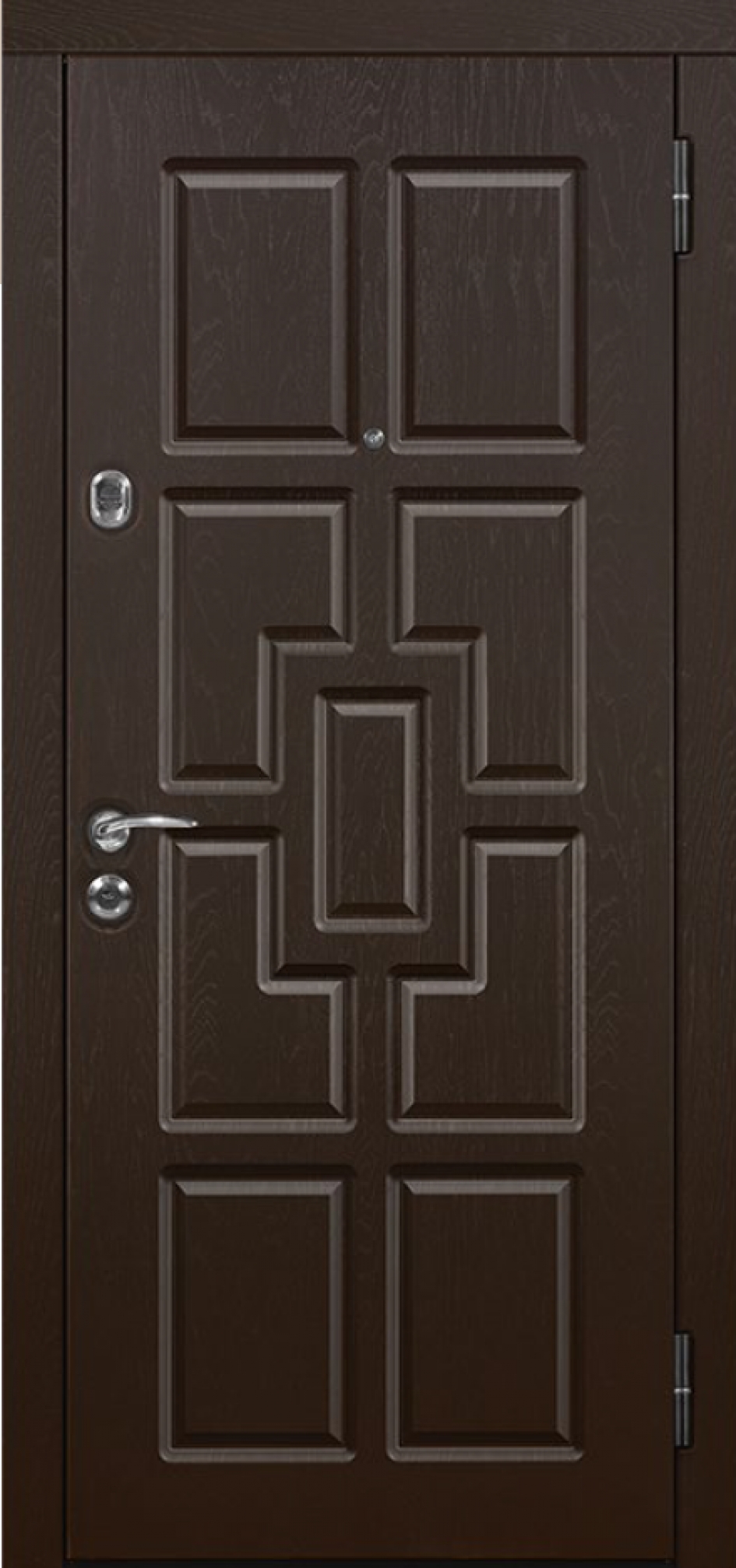 Модель «Шервуд» — роскошные строгие формы, благородные материалы отделки используемые в изготовлении входной двери Шервуд и соблюдение строгих геометрических форм выделяет принадлежность модели к классическому дизайну.