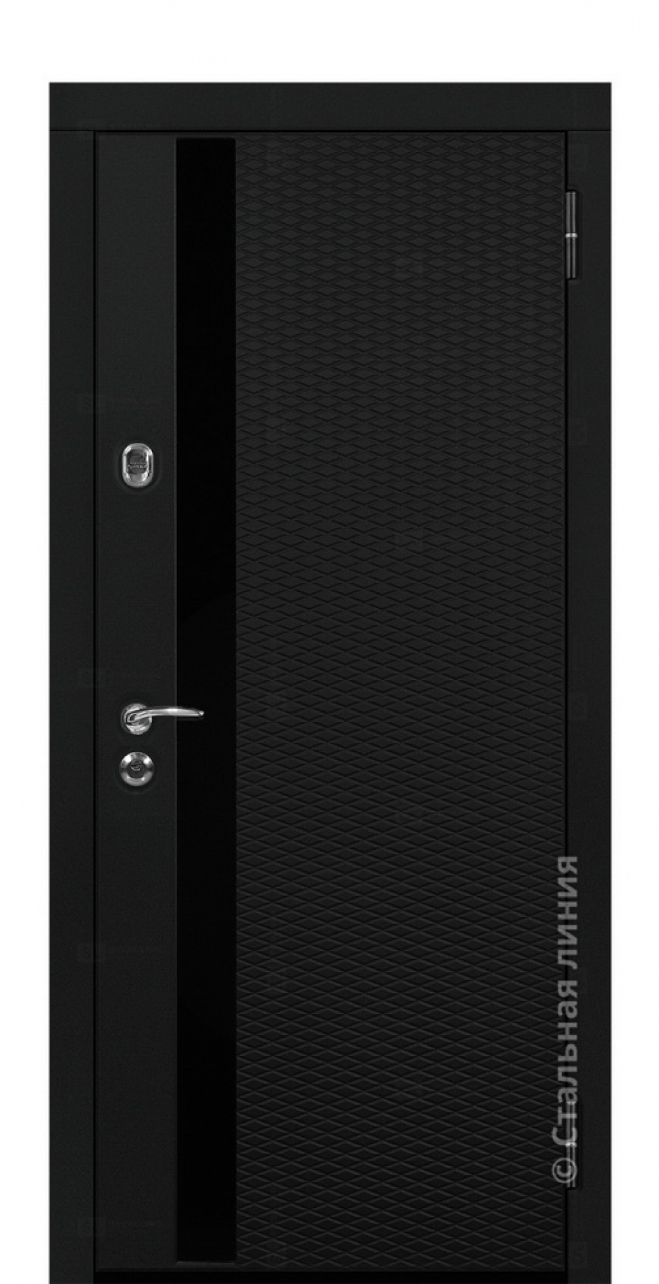 Модель «Вирал R1» — современная входная дверь отличается удивительным и необычным внешним видом. Полотно разделяет вертикальная гладкая вставка черного глянцевого стекла. Рисунок фрезеровки мелкими "Ромбами" преображают интерьер. Модный тренд и нестандартный дизайн с оригинальными формами популярен среди европейских дизайнеров.