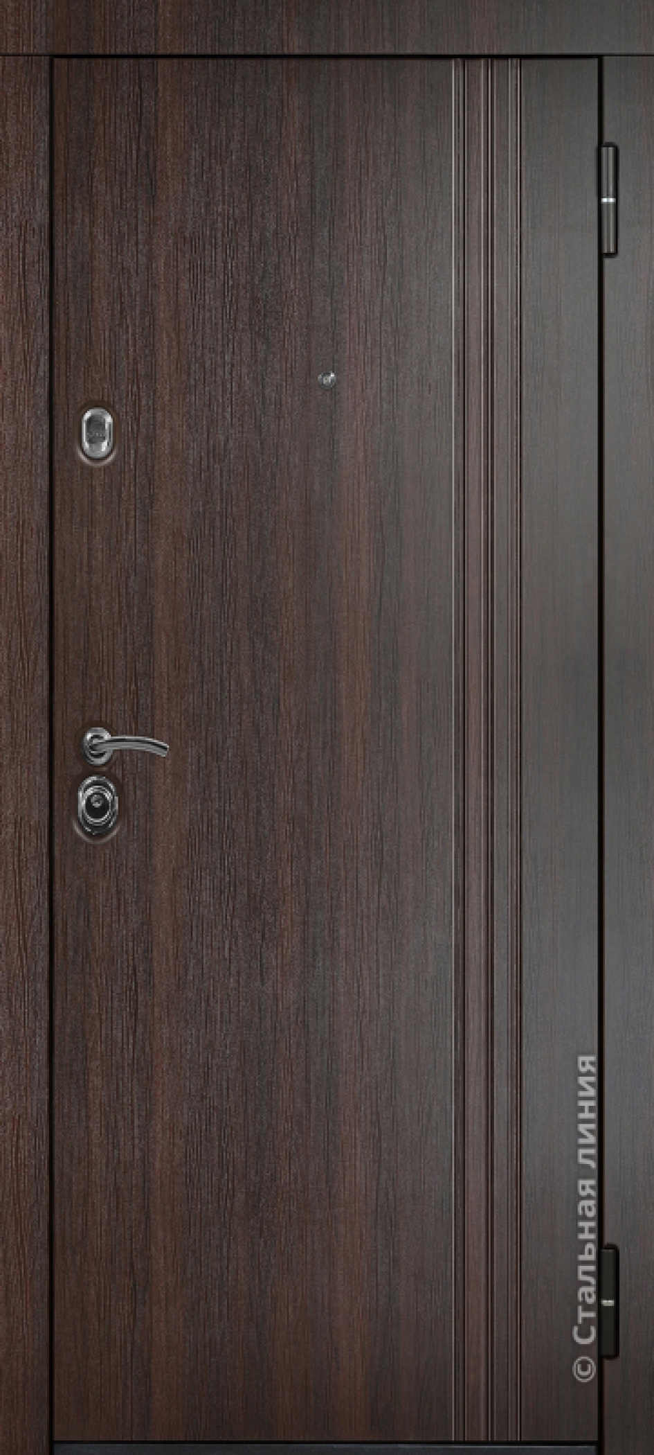 Универсальный дизайн: декоративная панель в цвете «Орех темный» легко впишется в интерьер вашей прихожей. Покрытие устойчиво к лёгким царапинам и отлично подходит для квартирных дверей.